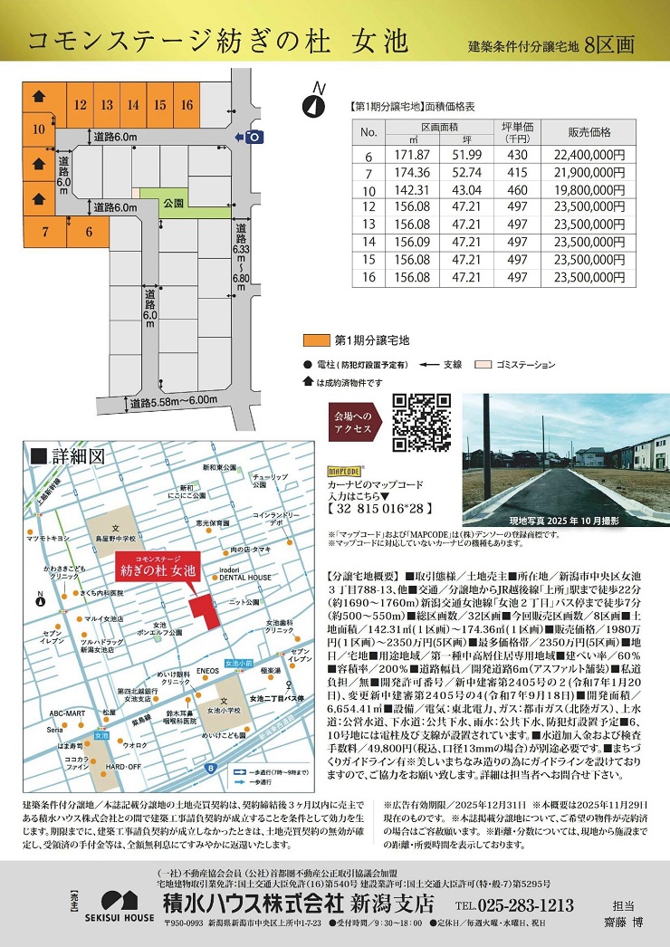 【積水ハウスより女池分譲地のご案内】